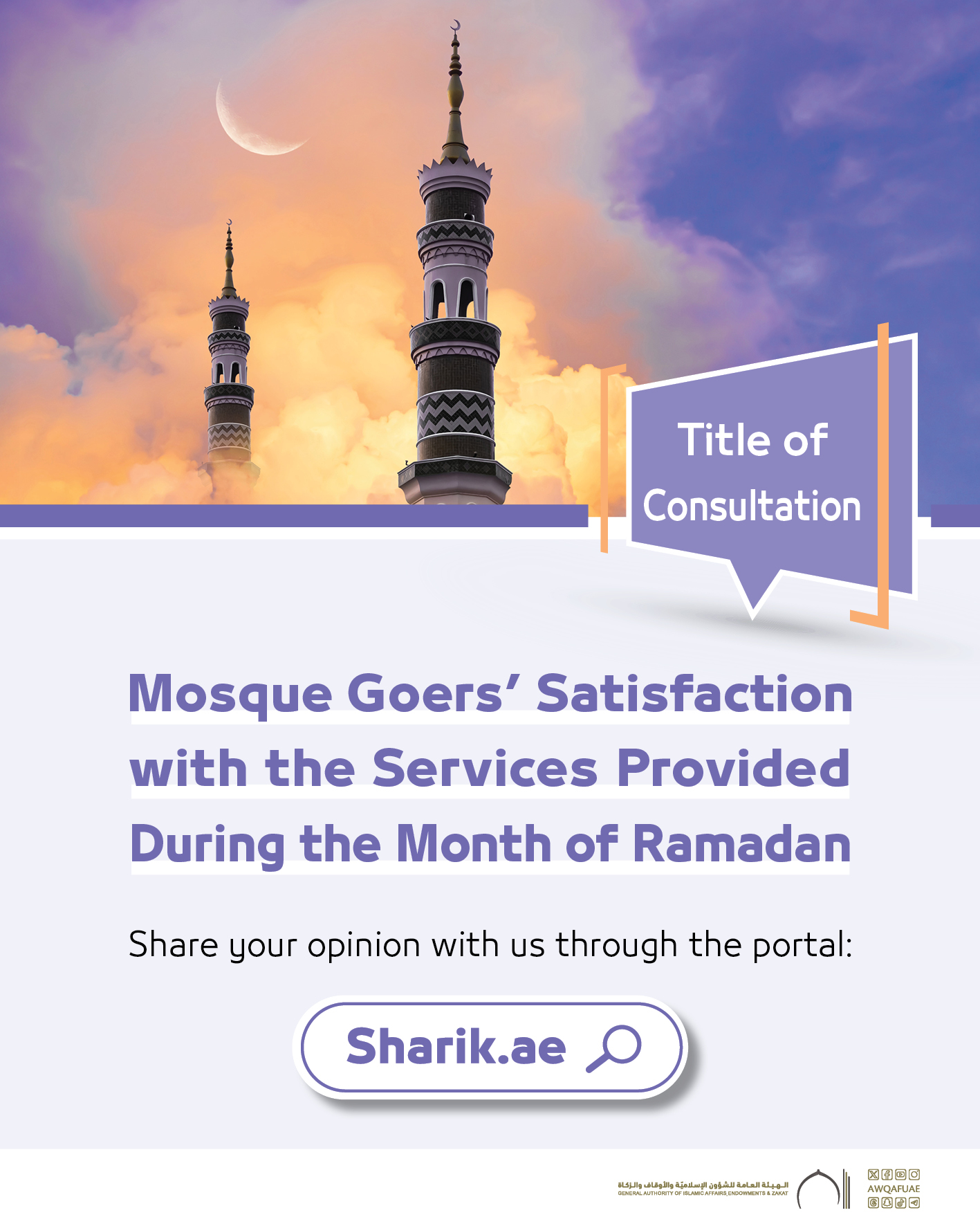 The General Authority of Islamic Affairs, Endowments, and Zakat is keen to provide a suitable and integrated environment for mosque-goers during the blessed month of Ramadan, ensuring the comfort of worshippers and enhancing the spirituality of this holy month. This digital survey aims to measure the level of satisfaction among mosque visitors regarding the services provided and to identify their opinions and feedback in order to develop and improve the quality of these services.